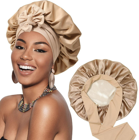 여성용 조절 가능한 긴 새틴 모자 곱슬 머리를위한 타이 밴드가있는 실크 헤어 커버 부드러운 수면 편안함
