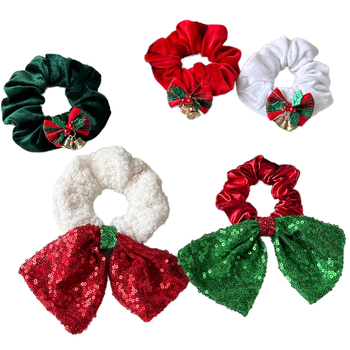 Özel noel Scrunchies saç Scrunchies kadife at kuyruğu tutucu ile baskı şerit özel logo renk saç Scrunchies